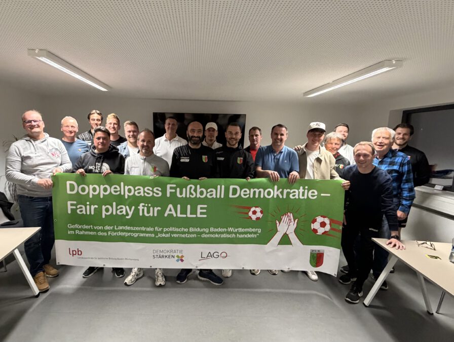 Das Projekt „Doppelpass Fußball Demokratie“ des FC Esslingen möchte Sport und Fußball als Erfahrungsraum für demokratisches Handeln, Respekt und Vielfalt nutzen. Ziel ist es, durch sportliche Aktivitäten/Turniere und begleitende Workshops Kinder, Jugendliche und Erwachsene aus dem Verein und gemeinsam mit Netzwerkpartnern miteinander in Kontakt zu bringen, Vorurteile abzubauen und demokratische Grundhaltungen im Alltag zu stärken. Kernidee: Der Sportverein organisiert über den Trainingsbetrieb hinaus ein interkulturelles und inklusives Sport- und Begegnungaktionssprogramm, das von Vereinsmitgliedern gemeinsam mit lokalen Partner*innen entwickelt wird. Neben Trainings- und Turnierangeboten gibt es verbindenden kreative Dialog- und Workshopformate, in denen Themen wie Teamgeist, Fairness, Rassismus, Mitbestimmung, Transparenz, Sexismus im Sport und im Verein aufgegriffen werden. „Gefördert von der Landeszentrale für politische Bildung Baden-Württemberg“, des Landesprogramms „Demokratie stärken!“ und der LAGO.